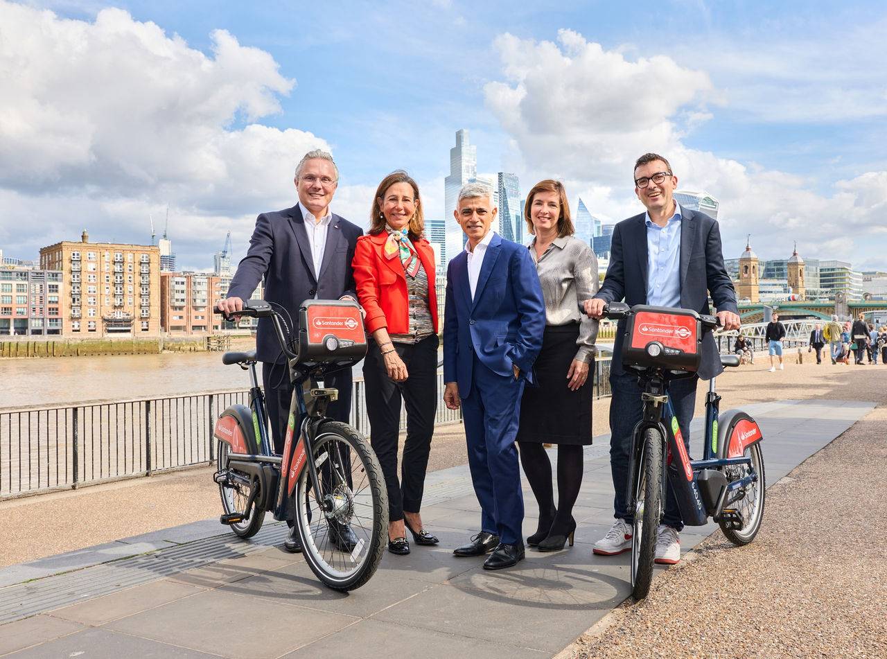 Santander has today (25 September 2025) announced the renewal of its sponsorship of London’s cycle hire scheme for another seven years – from September 2025 to 2032 - continuing the long-running success of the bank’s partnership with Transport for London (TfL). Banco Santander’s Executive Chair, Ana Botin, and Santander’s UK CEO, Mike Regnier, were joined by the Mayor of London, Sadiq Khan, London’s Walking and Cycling Commissioner, Will Norman, and TfL’s Customer Director, Emma Strain, yesterday afternoon at the iconic Southbank in central London to honour the occasion.