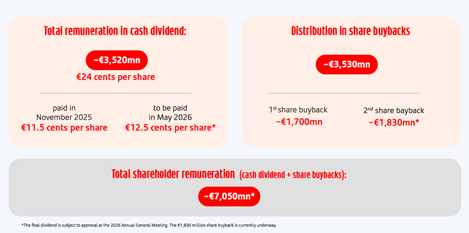 As a result of our strong capital generation, we expect to reward shareholders with 10 billion euros in share buy-backs for 2025 and 2026 and with excess capital, in addition to the ordinary distribution of cash dividends.