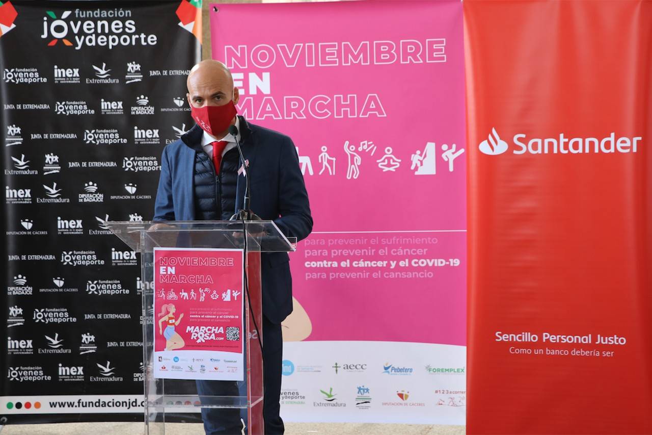 Hoy se ha presentado en Cáceres el proyecto ‘Noviembre en Marcha’, que desarrollará un centenar de micro eventos deportivos que se celebrarán durante el mes de noviembre en la capital cacereña como alternativa a la habitual y multitudinaria ‘Marcha Rosa’ a favor de la Asociación Española Contra el Cáncer.