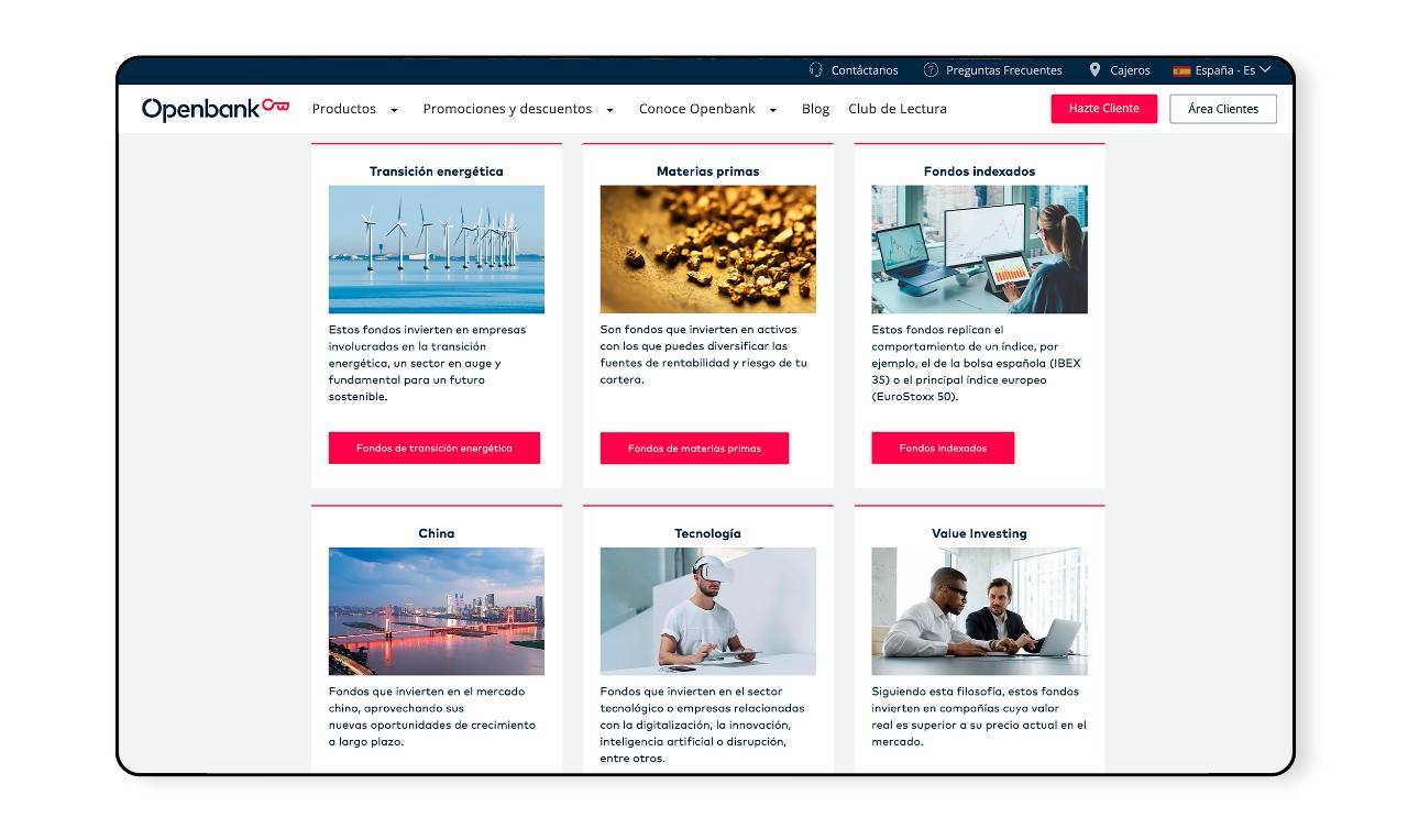 Openbank, el banco 100% digital de Grupo Santander, ofrece a sus clientes listas de fondos de inversión seleccionadas según distintas temáticas que están siendo tendencia en la economía a nivel global.