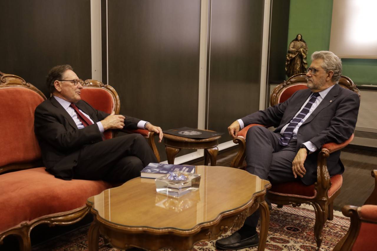 El rector de la Universidad de Zaragoza, Jose Antonio Mayoral, y el presidente de Santander Universidades y vicepresidente de Universia, Matías Rodríguez Inciarte, han mantenido un encuentro de trabajo para reforzar la colaboración de ambas instituciones y analizar los proyectos y programas que están impulsando de forma conjunta para apoyar a la comunidad universitaria de la Universidad de Zaragoza (Unizar), que actualmente cuenta con 39.500 alumnos de titulaciones oficiales y 6.200 PAS / PDI.