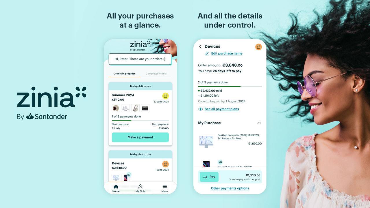 Zinia permite a los clientes de Apple una experiencia de usuario ágil, intuitiva y segura para financiar un iPhone, iPad, Apple Watch, Mac o cualquier otro dispositivo en las tiendas Apple o en la Apple Store online en tan solo unos segundos. Para completar cualquier transacción, los clientes sólo tienen que facilitar su número de teléfono y fecha de nacimiento, confirmar la recepción de un código de seguridad y seguir proceso de validación rápida accediendo a su banca online dentro de la tienda online de Apple. Todo ello, con la seguridad y el respaldo de un gran grupo financiero como Santander.