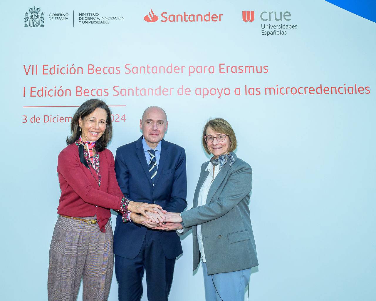 La presidenta de Banco Santander y Universia, Ana Botín, ha anunciado esta mañana que la entidad triplicará su aportación para las ‘Becas Santander para Erasmus’ con 3 millones de euros en 2025. Será la séptima edición de este programa impulsado por el Santander con la colaboración del Ministerio de Ciencia, Innovación y Universidades y la Conferencia de Rectores y Rectoras de las Universidades Españolas (CRUE).
