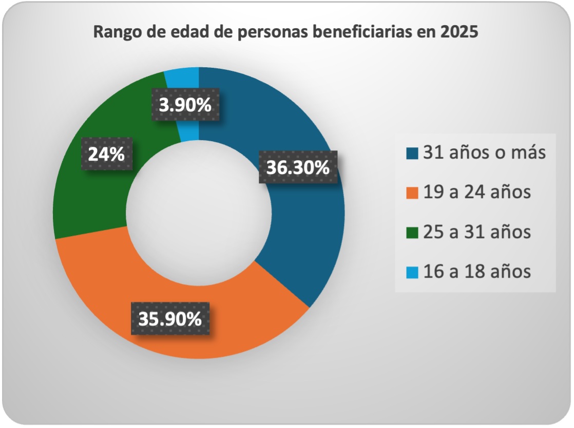 La estrategia de Santander Universidades mantiene un enfoque inclusivo y diverso. En 2025, 57% de las personas beneficiarias fueron mujeres, mientras que 42% correspondió a hombres. Por rango de edad, el mayor impacto se concentró en personas mayores de 31 años (36.3%), seguido por jóvenes de 19 a 24 años (35.9%), de 25 a 31 años (24%) y de 16 a 18 años (3.9%), lo que refleja el alcance de los programas a distintas etapas de formación y desarrollo profesional.