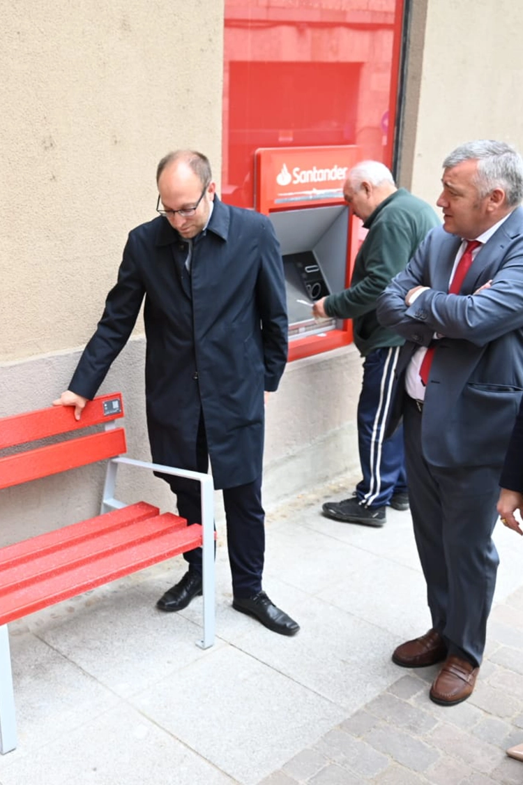 Esta mañana, el director de Instituciones de Banco Santander en Castilla y León, Rubén García, y el alcalde de Ciudad Rodrigo, Marcos Iglesias, han presentado el nuevo mobiliario urbano que estrena la ciudad tras la donación realizada por Santander y el acuerdo alcanzado con el Consistorio; concretamente, cinco bancos fabricados con tarjetas bancarias recicladas.