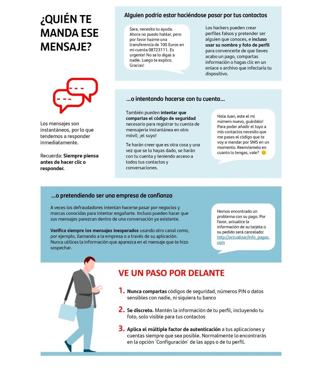 Imagina que un día recibes un mensaje en tu bandeja de correo electrónico, un mensaje de texto en tu teléfono móvil o una llamada telefónica de parte de alguien que dice ser de una empresa (generalmente reconocida), como tu compañía de luz o, incluso, tu propio banco. La posibilidad de que un estafador suplante la identidad de una compañía o un tercero para tener acceso a tu información personal siempre está presente. Antes de hacer clic en un enlace, responder a alguna pregunta o dar tus datos personales, te aconsejamos que pongas en práctica las siguientes recomendaciones.